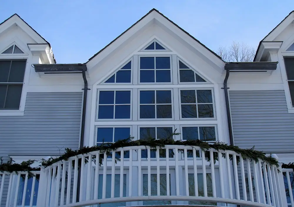 This beautiful home located within Shelburne Farms looks out to Lake Champlain, so the frontal window wall is one of its main features. To make the home more energy-efficient, we upgraded all the windows with triple glazed units. The stone patio needed some TLC, too. Frost heaves had made it uneven and a trip hazard, so we removed all the stones, numbered them, releveled the surface, and then re-stacked them.
